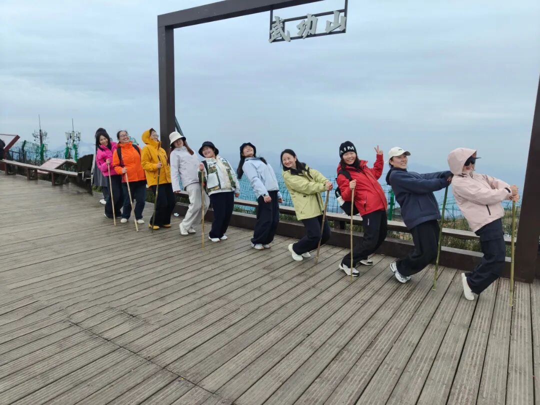 行至半山腰時(shí),天空突然飄起細(xì)雨,氣溫急劇下降,給登山增加了不小的難度。但這并未澆滅大家的熱情,伙伴們迅速拿出提前準(zhǔn)備的雨衣披上,有的主動(dòng)攙扶著已經(jīng)精疲力盡的同事,小心翼翼地在濕滑的石階上穩(wěn)步前行。山路愈發(fā)難走,卻讓團(tuán)隊(duì)的凝聚力愈發(fā)凸顯。大家心中只有一個(gè)共同目標(biāo)——向著山頂,繼續(xù)前進(jìn)!