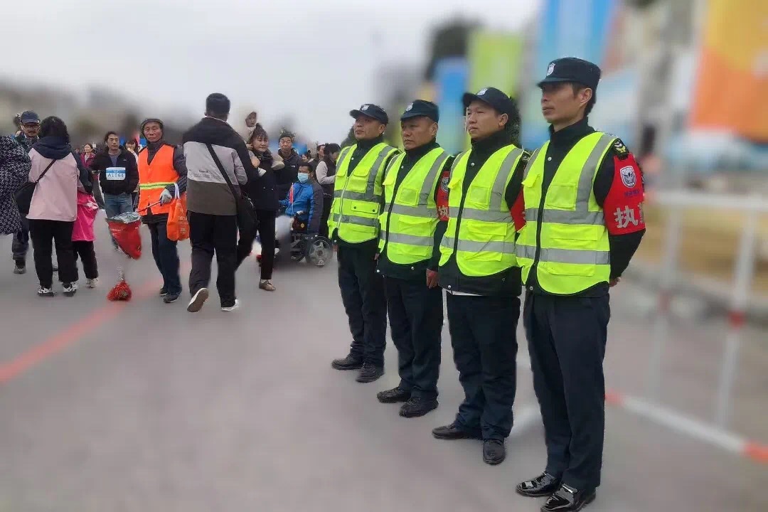 活動當日,天還未亮,領威保安團隊便已全員到崗,各就各位??偨浝韯⒌儡娪H臨現(xiàn)場,深入各個崗位檢查準備工作。從活動起點的人員疏導,到沿途關鍵路段的秩序維護,再到終點的人流管控,每一處都有保安人員挺拔的身影。他們眼神專注,時刻保持高度警惕?;顒舆^程中,他們不僅要維持現(xiàn)場秩序,引導參賽選手有序進行,還要及時處理各種突發(fā)情況。盡管活動當天寒風凜冽,但是保安員們絲毫沒有懈怠,始終堅守在崗位上。